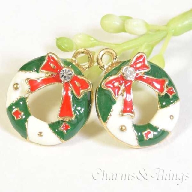 ハンドメイド材料 クリスマス素材 ■色 ゴールド(金色メッキ) + ラインストーン ■入り数 2個 ■素材 合金+エポ ラインストーンガラス ■サイズ 18mm x 16mm x 5mm 写真参照 実線が1cm、破線は5mmになります。 リースデザインにキラキラと輝くラインストーンがセンターに光ります。 クリスマスパーティーやイベントにぴったりのアクセサリーパーツです。 クリスマスの特別感を演出するのにもピッタリの赤と緑のカラーも華やかさを添えてくれます。 ※多少のバリ・エナメル加工の雑味・裏面のメッキ不良等見受けられる事がございます。 ご了承の上お買い求めいただきますようお願い致します。 ■海外からの輸入品になりますので国産、 および国内メーカーのお品物のような完成度のものではございません。 バリ・欠け、メッキ不良等見落としがある場合がございます。 ご了承いただきました上でお買い求めください。 ■ロットにより多少お色の濃淡ございます。 又モニター環境によりましても見え方が違いますのでイメージが違ってくる事があります。 ※ ハロウィン・クリスマス 金 ピアス イヤリング アクセサリー部品 アクセサリーチャーム 金具 ミニチャーム ユニーク 素材 カン付き アクセパーツ 手作り アクセサリー 資材 金属 パーツ金具 ネックレス ピアス 部品 手芸 メタルチャーム ブレスレット クリスマスチャーム