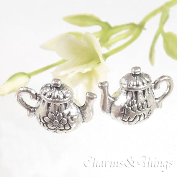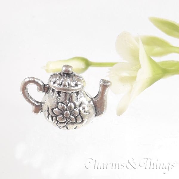 C&T ティーポット・TeaTimeのチャーム アンティークシルバー (6個入り) アクセサリーパーツ【SC111】