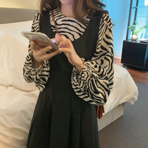 長袖 バルーンスリーブ シャツ ゼブラプリントリラックス カジュアル /IPT