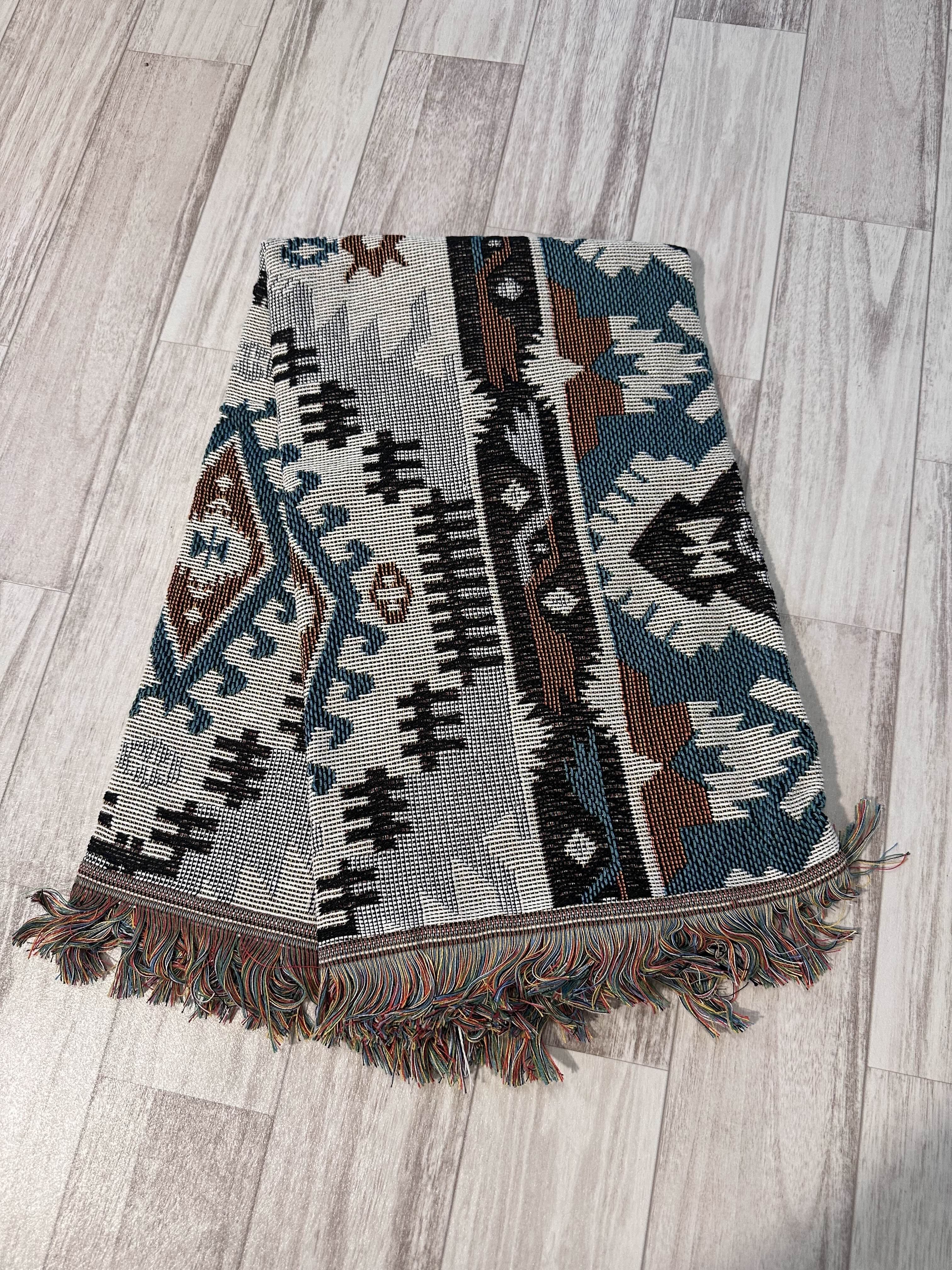 手織り風の温もりを感じる、90x180cm の多機能ラグ/ブランケット。