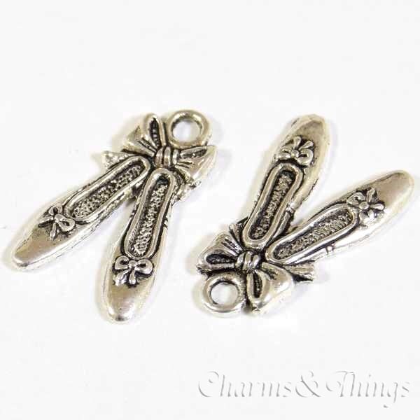 C&T トウシューズのチャーム バレエ(10個入) アンティークシルバー【SC1401】両面加工