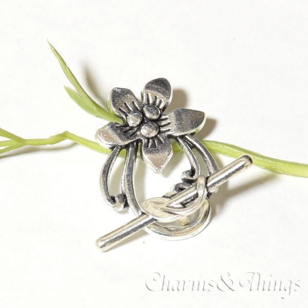 C&T 花 マンテル 大き目 トグル 20x30mm (4セット) アンティークシルバー【FD623】