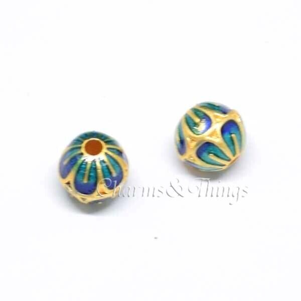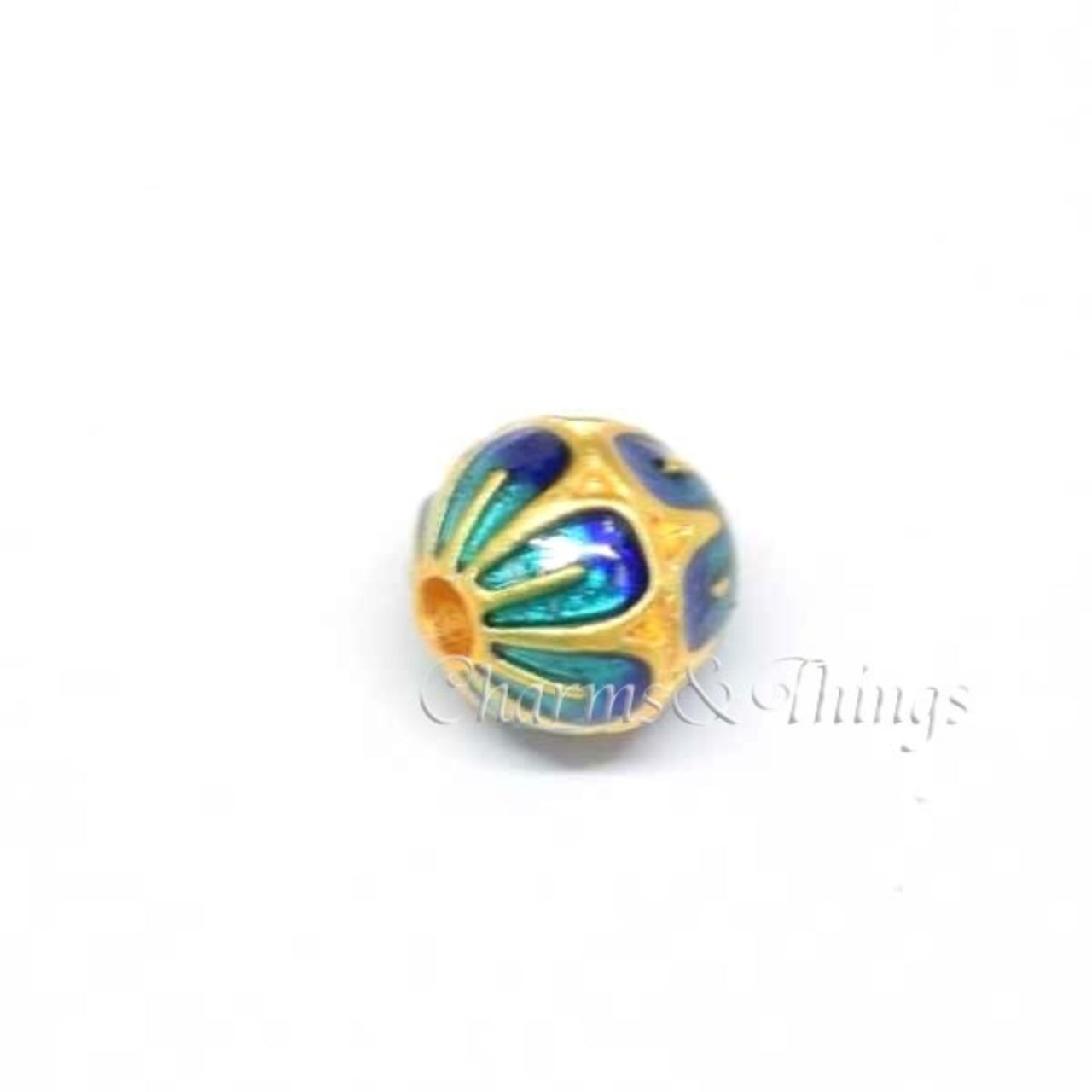 マットゴールドベースのメタルビーズにエナメルコーティングが美しいビーズで、