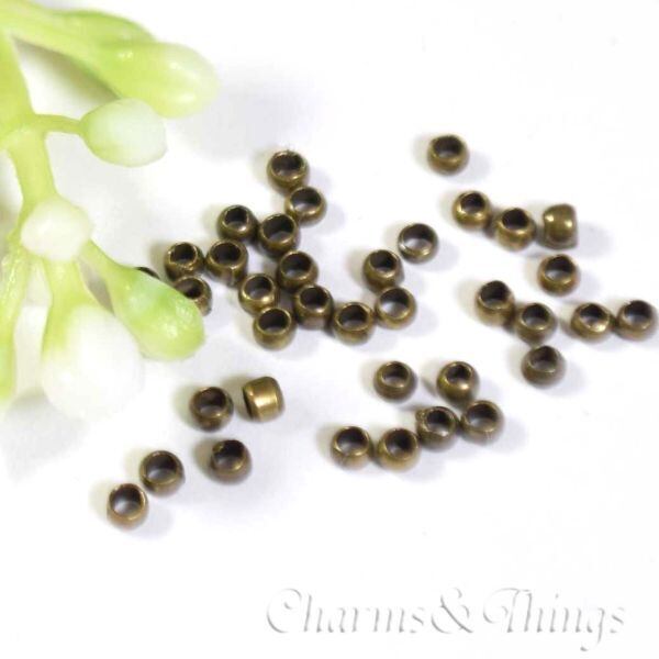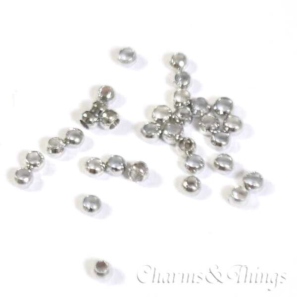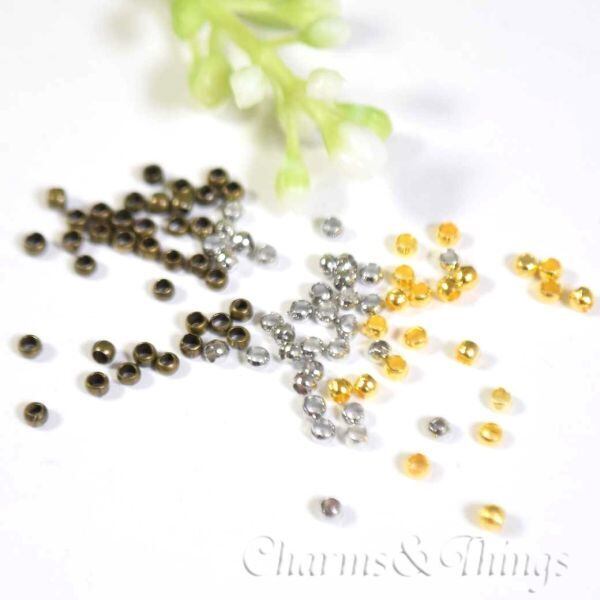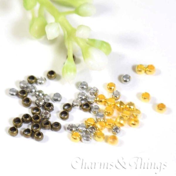 つぶし玉・カシメ玉は、アクセサリー制作でワイヤーやテグスの端をしっかり固定したり、パーツを好みの位置で止めるために使われる小さな金具です。ペンチで「かしめる(潰す)」ことで、アクセサリーの強度・耐久性がアップし、仕上がりも美しく整います。ネックレスやブレスレット、ストラップ作りなど、ビーズを通したデザインの必需品です。