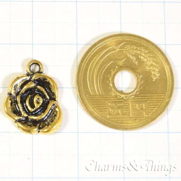 C&T バラ チャーム まあるい薔薇 花 アンティークゴールド (8個入) アクセサリー パーツ ローズ【 SC1550】
