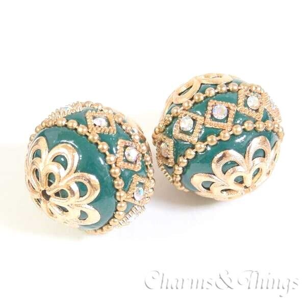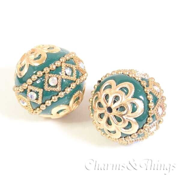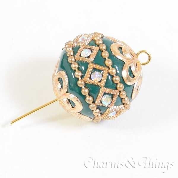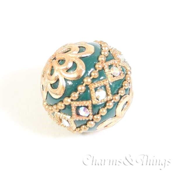 C&T インドネシア ビーズ 大粒 丸玉 (1個入) グリーンxゴールド【BDO13】ハンドメイド ビーズ