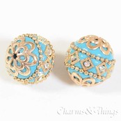 C&T インドネシア ビーズ 大粒 丸玉 (1個入) シアンxゴールド【BDO13】ハンドメイド ビーズ
