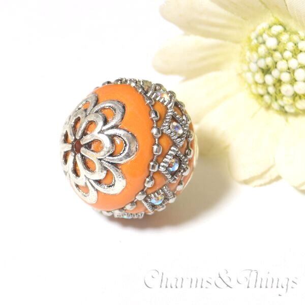 C&T インドネシア ビーズ 大粒 丸玉 (1個入) オレンジxシルバー【BDO13】ハンドメイド ビーズ
