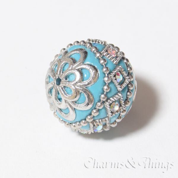 C&T インドネシア ビーズ 大粒 丸玉 (1個入) ライトブルーxシルバー【BDO13】ハンドメイド ビーズ