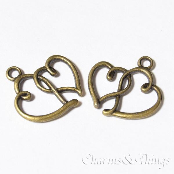 C&T ハート チャーム ダブル オープンハート (10個入) ブロンズ【SC303】