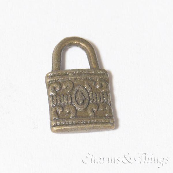 小さな南京錠はアンシエントな模様を両面に持つ細工の細かい一品。
