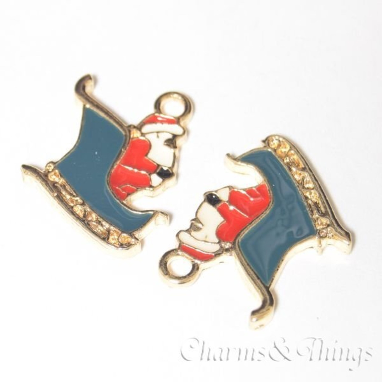 ソリに乗ったサンタクロース、小さなカン付きチャーム。
