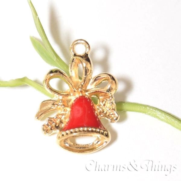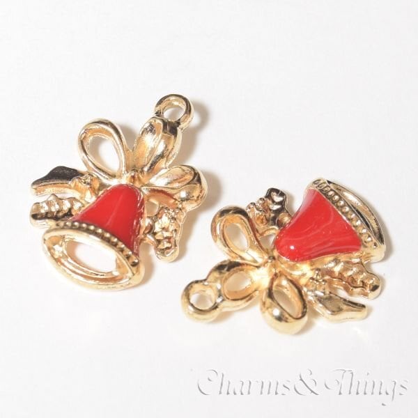 赤いエナメル加工のクリスマスベルに大きなリボン。