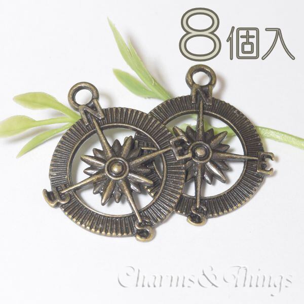 C&T 方位磁石 チャーム 羅針盤 コンパス 磁針 (4個入) アクセサリー パーツ【SC237】ブロンズ