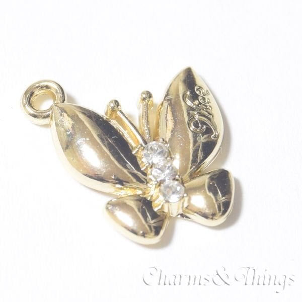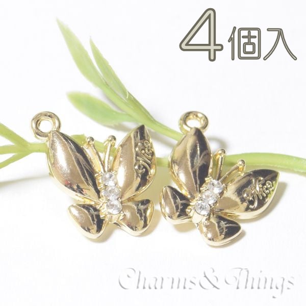 C&T 蝶 チャーム (4個入) ライトゴールド 【SC2363】ラインストーン