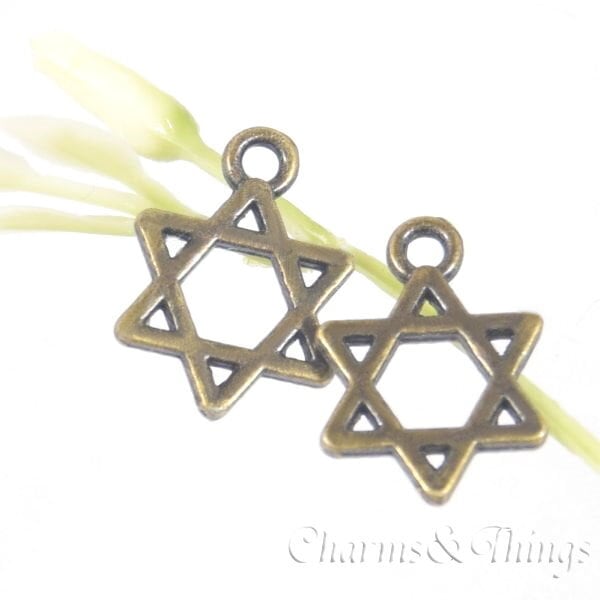 C&T 星 スター 六芒星 チャーム アンティークブロンズ (15個入) ピアス素材 パーツ【SC2207】