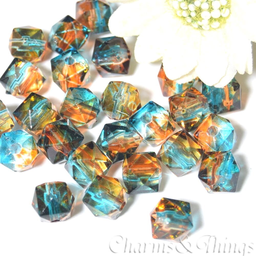 C&T アクリル 多角形 ビーズ ブルーxブラウン 8mm ツートン (18個) クセサリー パーツ【BDA43】