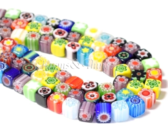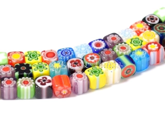 C&T ベネチアン風ミルフィオリ四角キューブ MLキューブ6mm (30個入り) グラスビーズ【BDGM02】