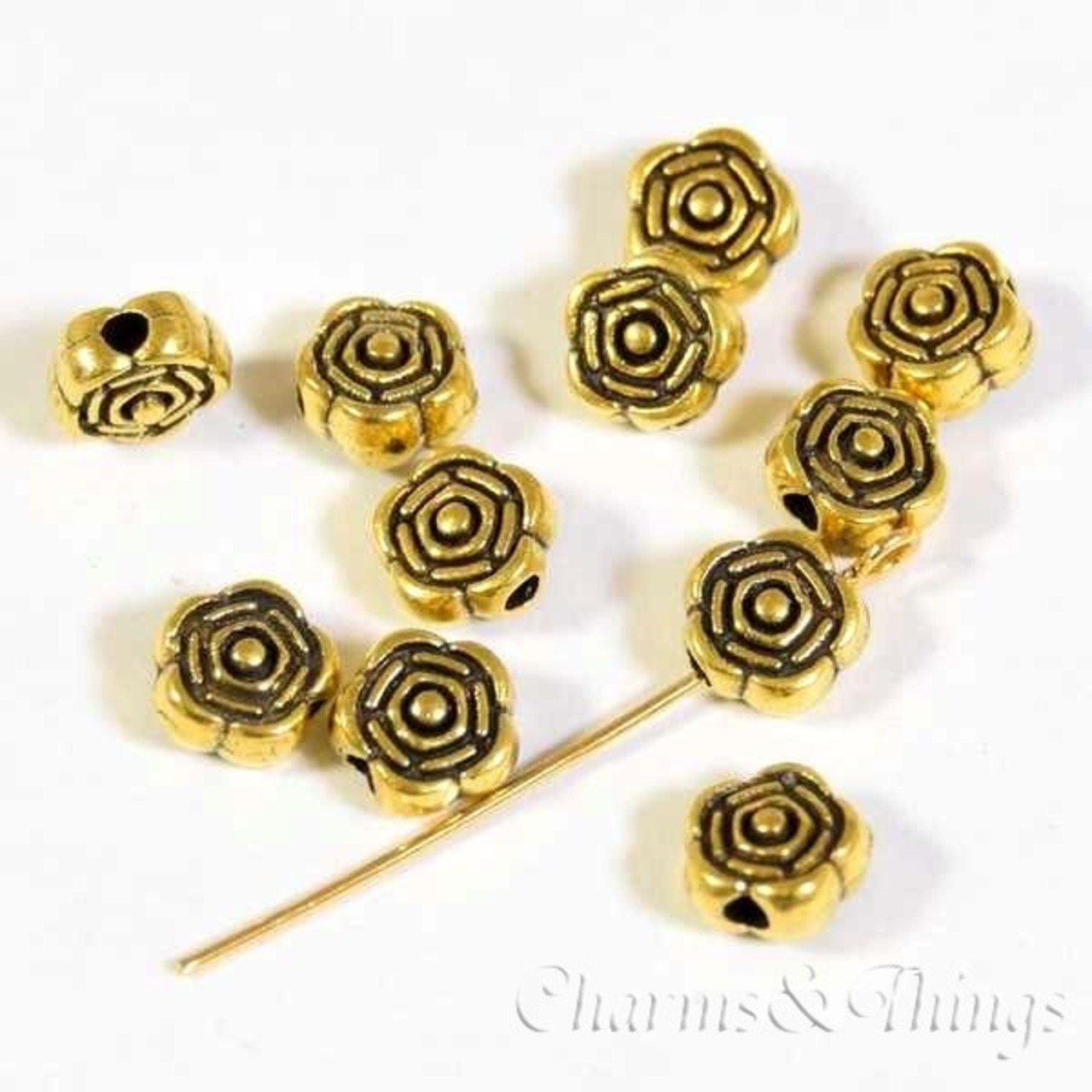 C&T メタル ビーズ 薔薇 約6mm 穴約1mm (22個入) アクセサリーパーツ【FD-BD13】