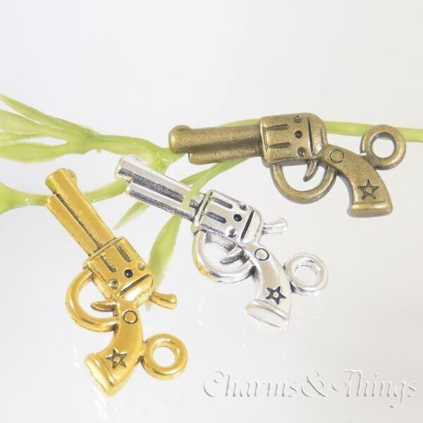 金 銀 アクセサリーパーツ チャーム アンド スイングピアス イヤリング アクセサリー部品 アクセサリーチャーム 金具 ミニチャーム ユニーク 素材 カン付き アクセパーツ 手作りギフト 資材 金属 パーツ金具 ネックレス ピアス 部品 手芸 キーチャーム バッグチェーン 拳銃 プレゼント