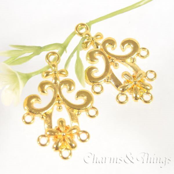 C&T 花のシャンデリア金属チャーム花モチーフ(4個入)アクセサリーパーツ【SC903】