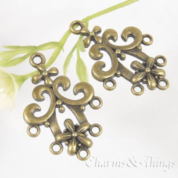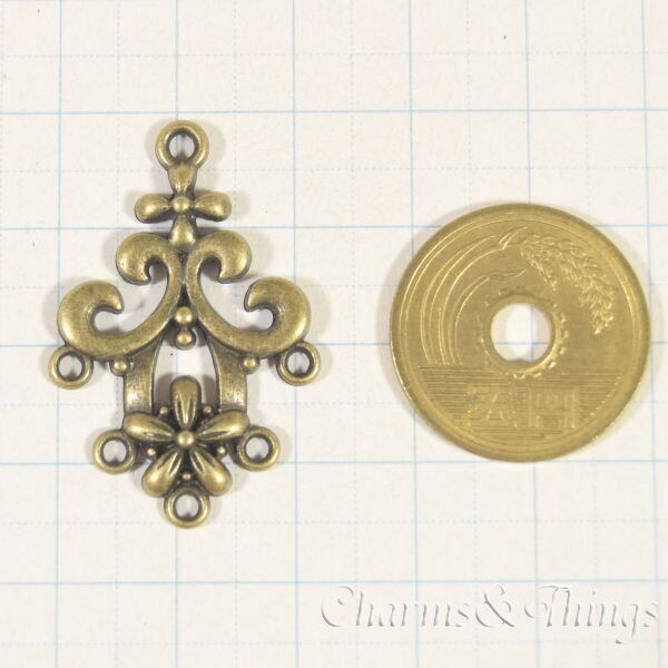 ※ クラシックなデザインでフローラルな印象のチャーム。花をモチーフにしたヨーロッピアンテイストあふれるチャームです。下にもたくさんのカンが有りますので、チェーンやラインストーンチャーム等でお好きなデザインにアレンジしてください。