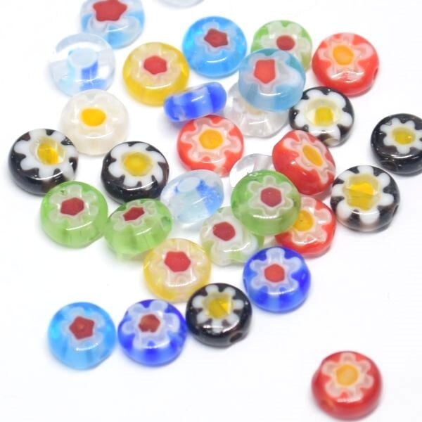 C&T ベネチアン風 ミルフィオリ 平丸 ML 6mm おはじき 不揃い (38個入) グラスビーズ【BDGM44】