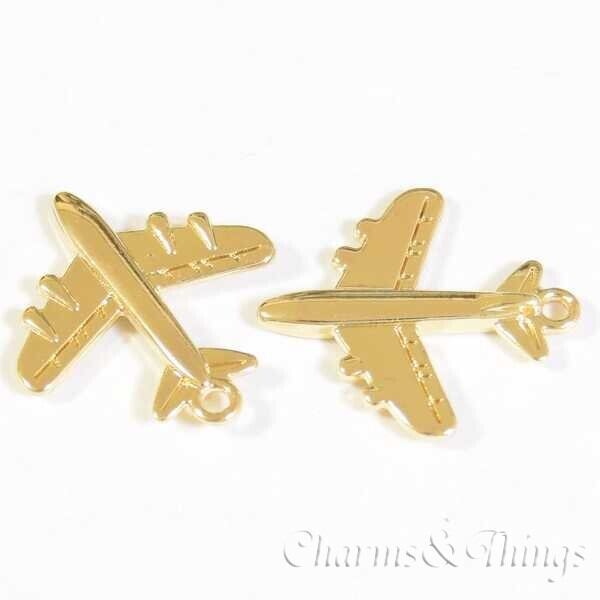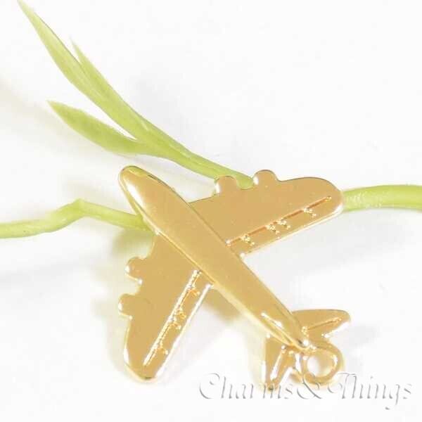 C&T 飛行機 チャーム ゴールド (4個入) アクセサリーパーツ【SC2114】立体加工 ハンドメイド 素材 乗り物 チャーム