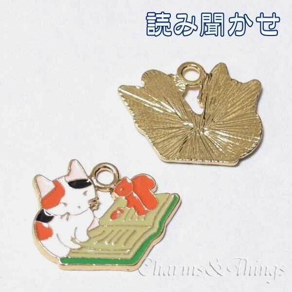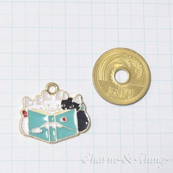 C&T ネコ物語 本と猫 ねこの読書 チャーム (2個入り) アクセサリーパーツ【SC2343】