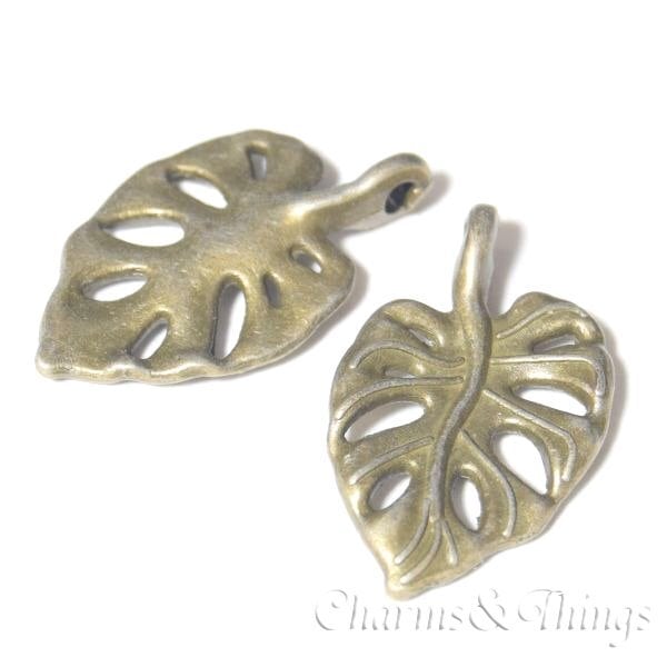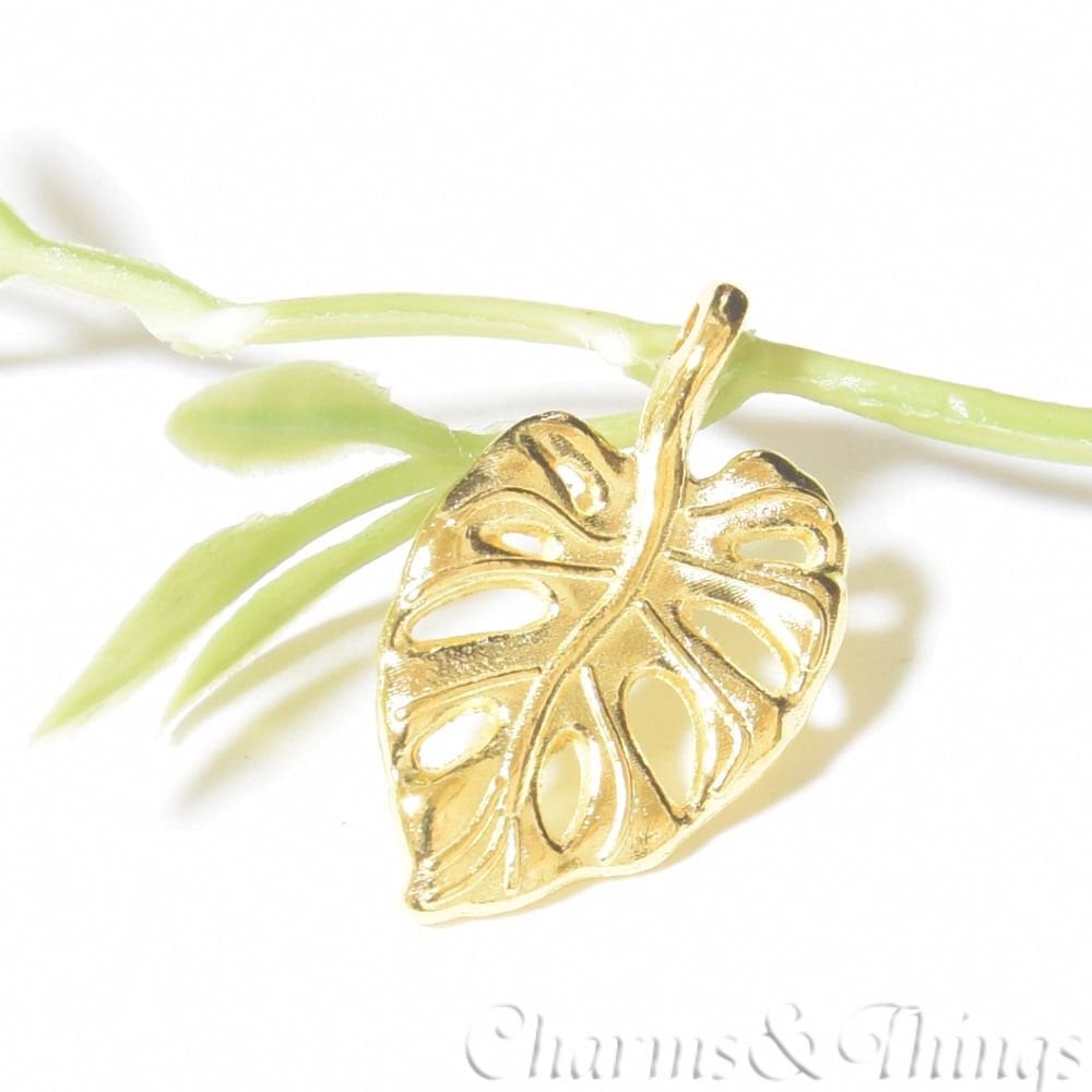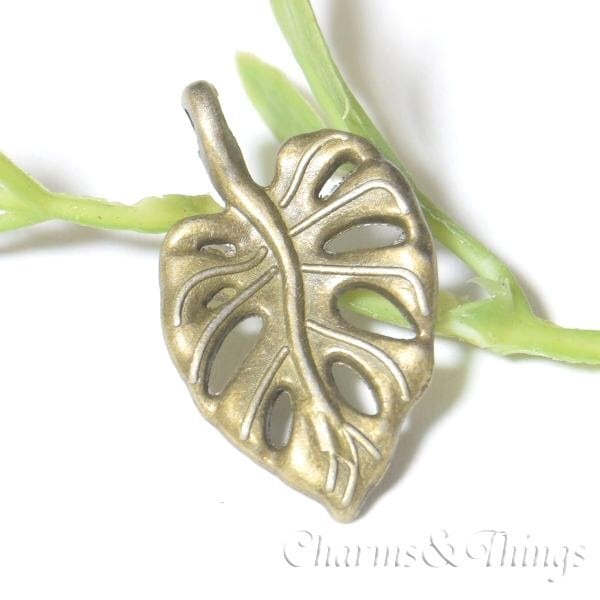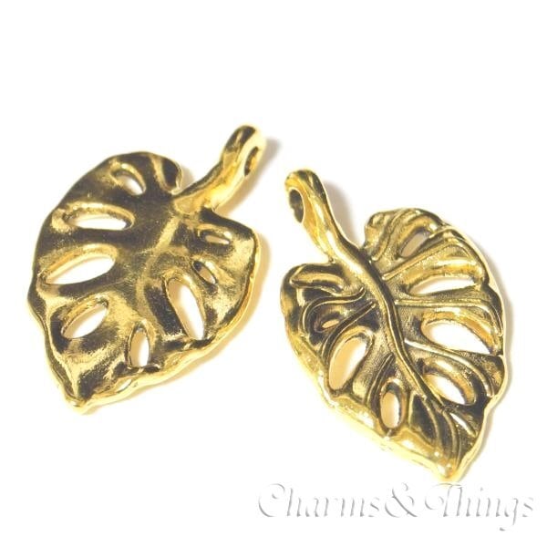 ※ 人気のハワイアン モチーフ。モンステラのチャーム。ビーズと合わせてイヤリングやピアスなどのハンドメイドアクセサリーにお勧めです。