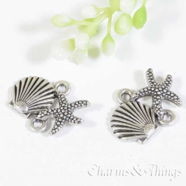 C&T シェルとヒトデのチャーム(4個入)アクセサリーパーツ【SC618】マリン 貝
