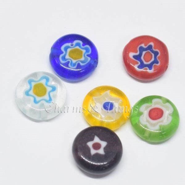C&T ベネチアン風 ミルフィオリ 平丸 ML 10mm おはじき 不揃い (20個入) グラスビーズ【BDGM54】