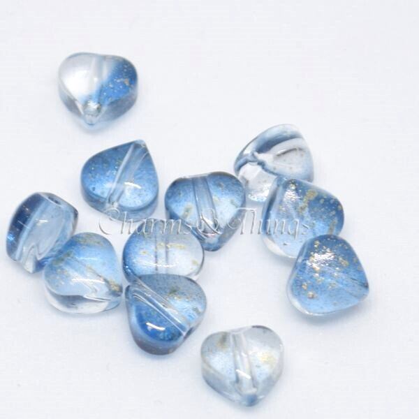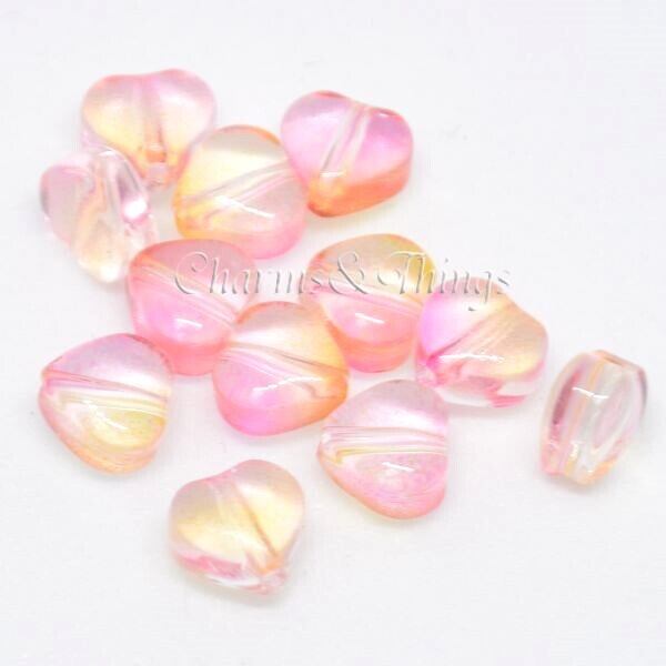 C&T ハート Mini ガラスビーズ (10個入り) アクセサリーパーツ オーロラ&ラメ加工【 FD-BDG35】