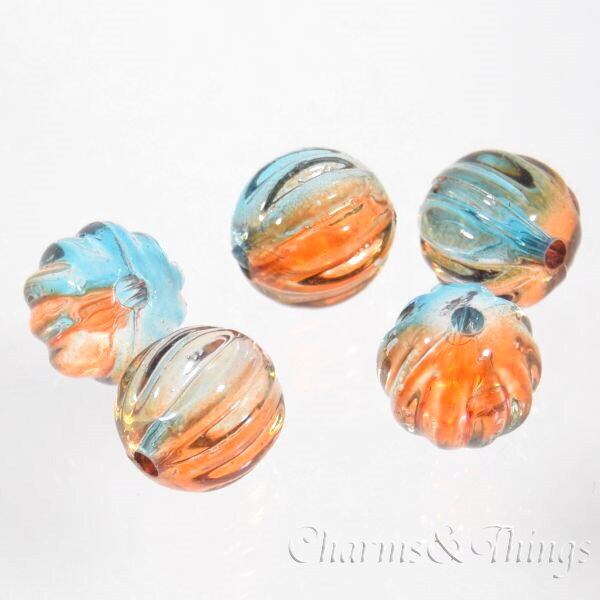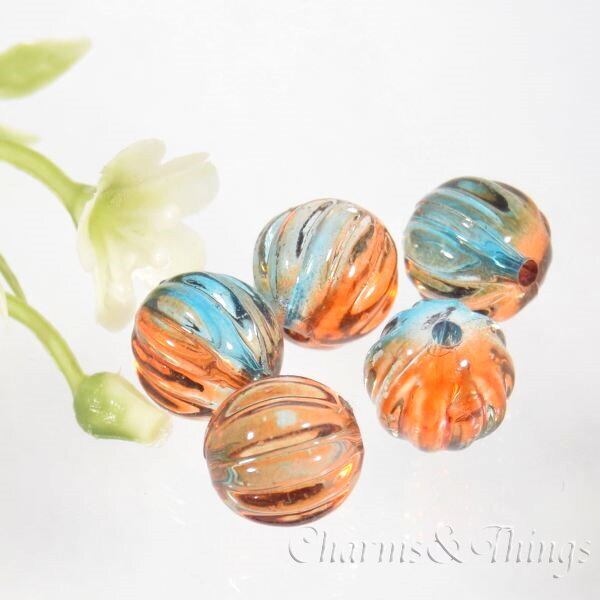 少し大粒のツートンカラーのコルゲートスタイル・かぼちゃ型ビーズ。