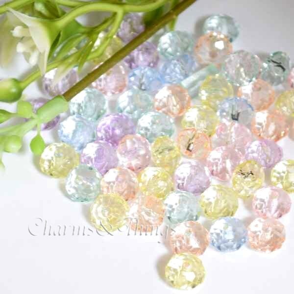 氷の輝き、淡いパステルカラーで透明感のある光沢も綺麗なアクリルビーズ。軽量でピアス等にも使い勝手のいいサイズ。