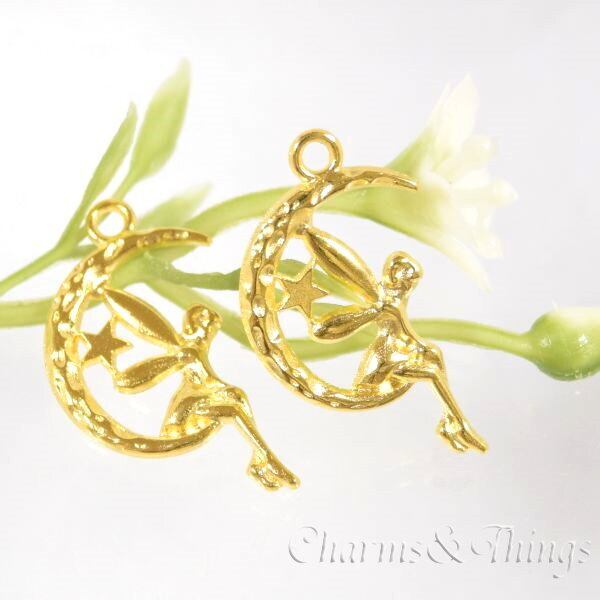 C&T 月 妖精 チャーム ゴールド (10個入) アクセサリーパーツ【SC2405】ハンドメイド 手芸用品