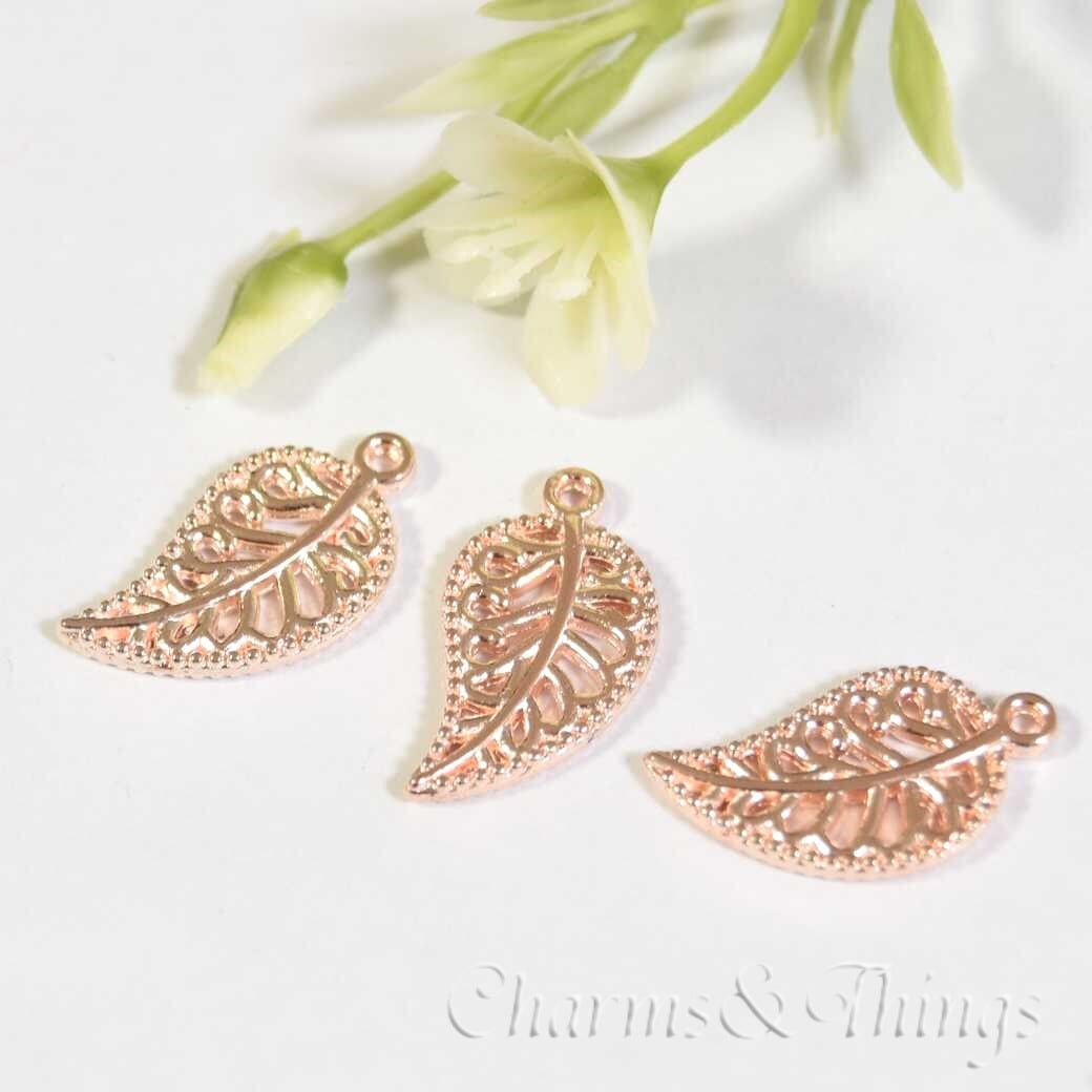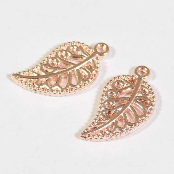 透かし模様のリーフのチャーム。ピンクゴールドの光沢がとても綺麗なパーツです。