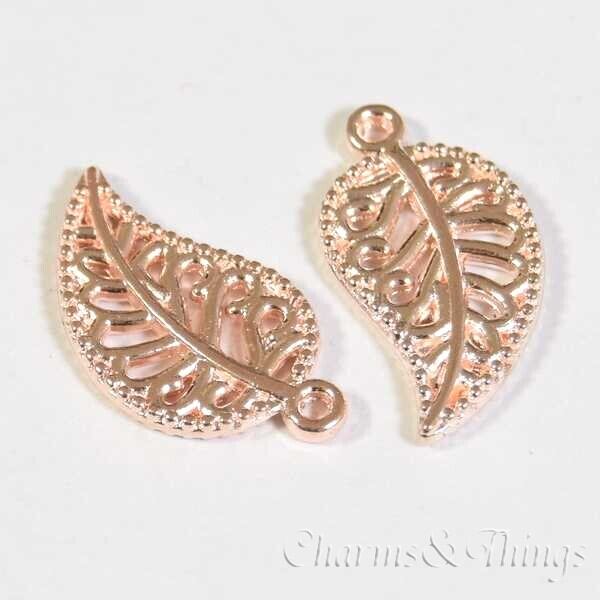 C&T 透かし リーフ ローズゴールド 葉っぱ チャーム (10個入) アクセサリー パーツ【SC2501】