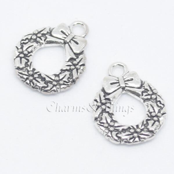 C&T クリスマスリース チャーム 両面加工 シルバー (6個入) アクセサリーパーツ【SC1631】