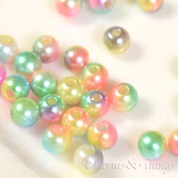 C&T パール ビーズ 穴有 6mm レインボー アクリル (50個) アクセサリーパーツ 【FD-BDA71】