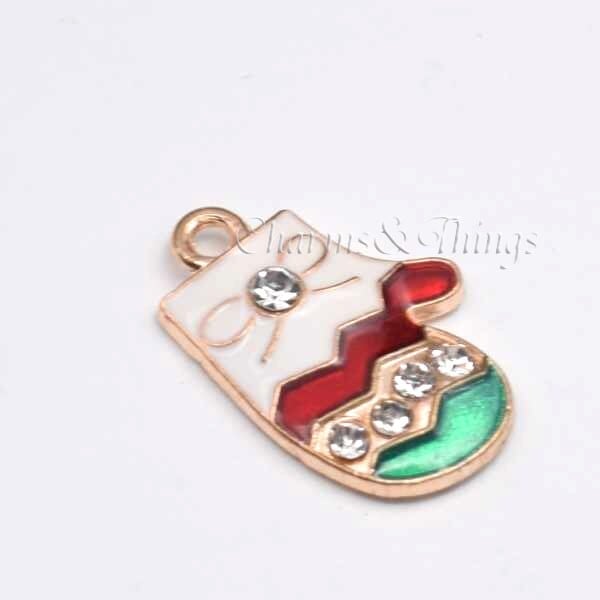 キラキラ輝くラインストーンが施された、可愛らしいミトン・手袋の形をしたチャーム。