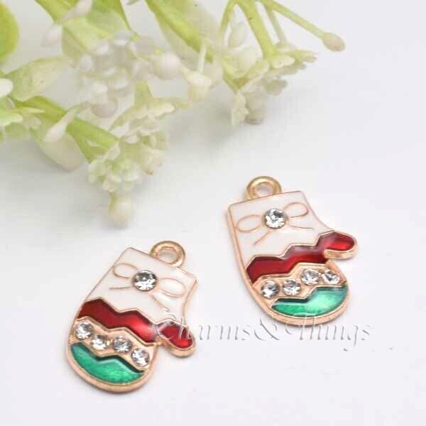 C&T ミトン チャーム ラインストーン 手袋 (2個入) アクセサリー パーツ Xmas ハンドメイド【SC1654】クリスマス エポチャーム Xmas