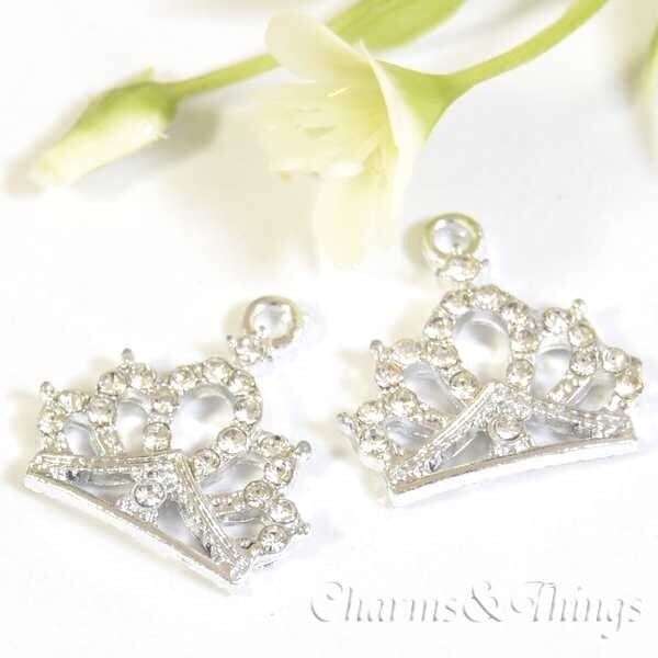 C&T 王冠 ラインストーン チャーム シルバー ティアラ (2個入り) アクセサリーパーツ 【SC451】基礎金具 ネックレス材料 ハンドメイド エンド