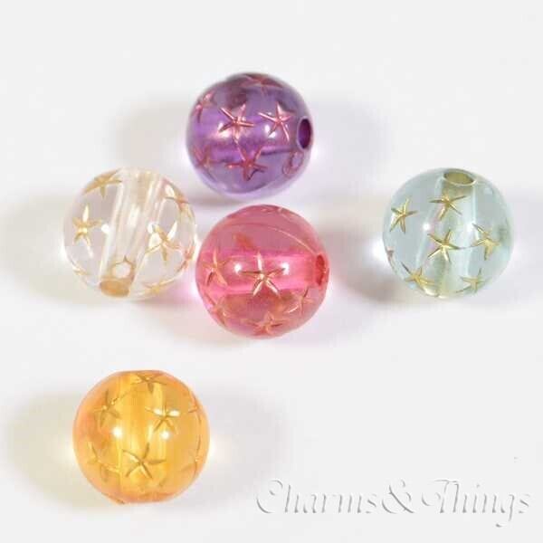 ハンドメイド素材 まあるいアクリルビーズ にきらめく星のプリント加工。