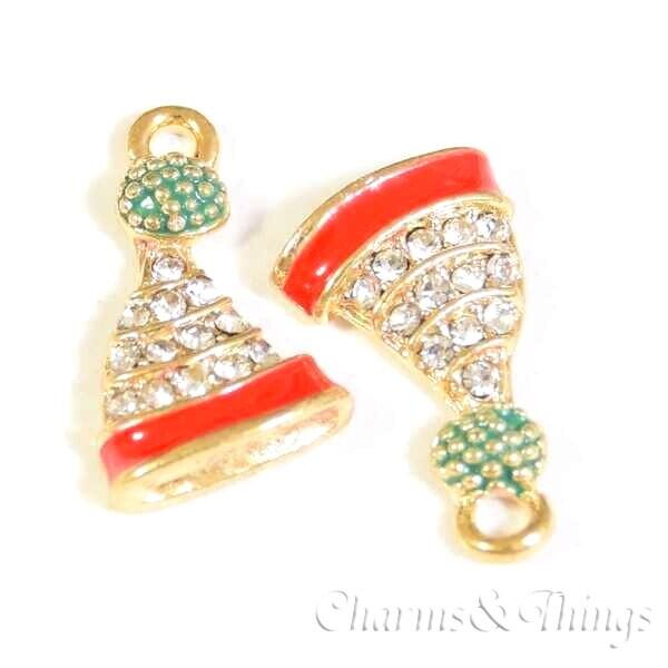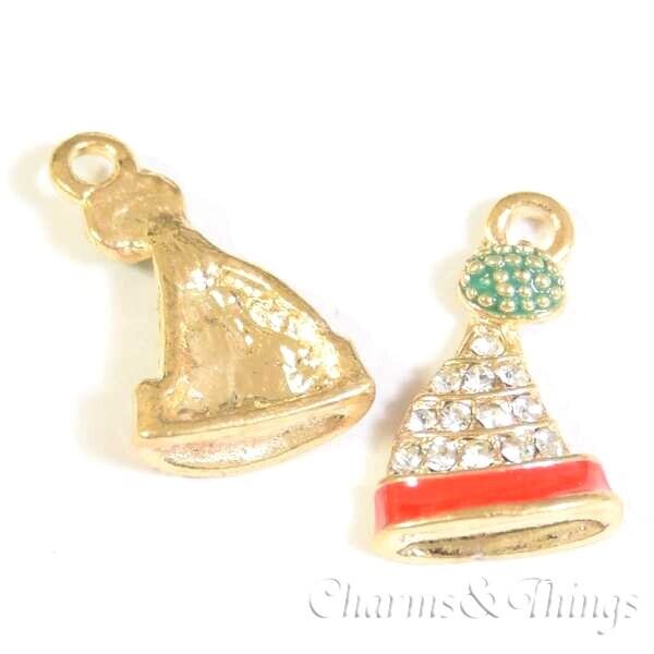 C&T クリスマス チャーム 帽子 サンタの帽子 ポンポン付き(2個入) アクセサリーパーツ【SC1627】 ラインストーン チャーム