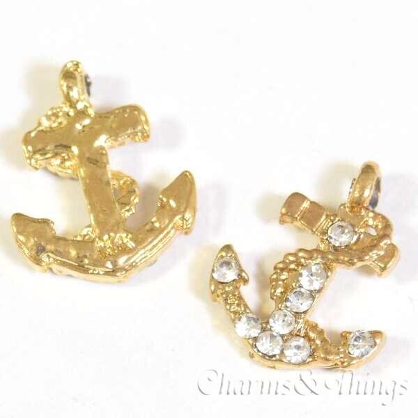 C&T アクセサリー パーツ チャーム アンカー 碇 イカリ (2個入) マリン系 ラインストーン【SC620】