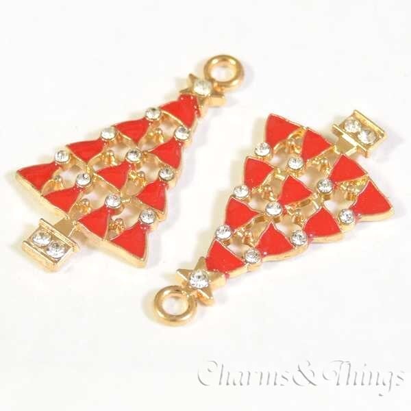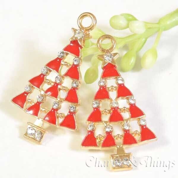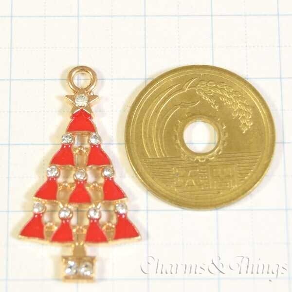 C&T クリスマスツリー 赤 ラインストーン チャーム ゴールド (2個入) アクセサリーパーツ【SC1639】クリスマス エポチャーム Xmas