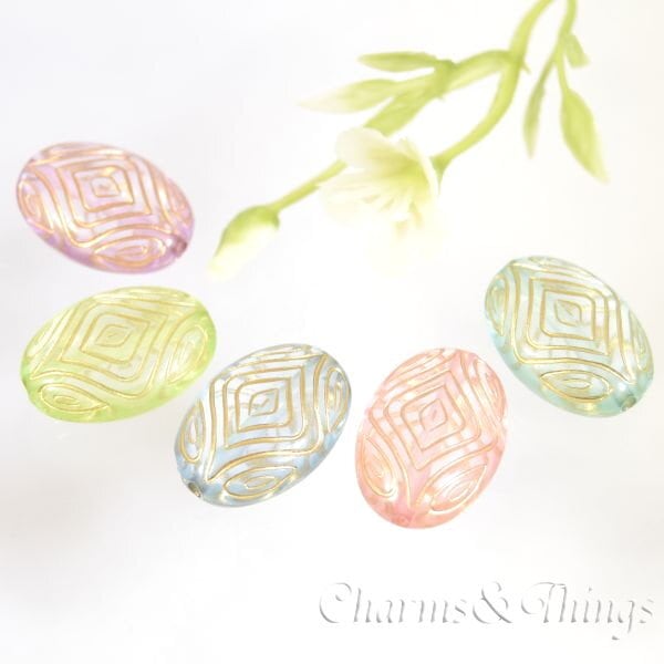 C&T ビーズ アクリル オーバル 約18mm ゴールド ライン (8個) アクセサリーパーツ 【BDA83】