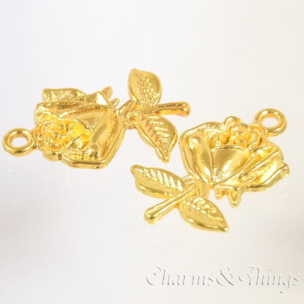 C&T 薔薇 の花 リアル ばら チャーム ゴールド (6個入) アクセサリーパーツ【SC1510】