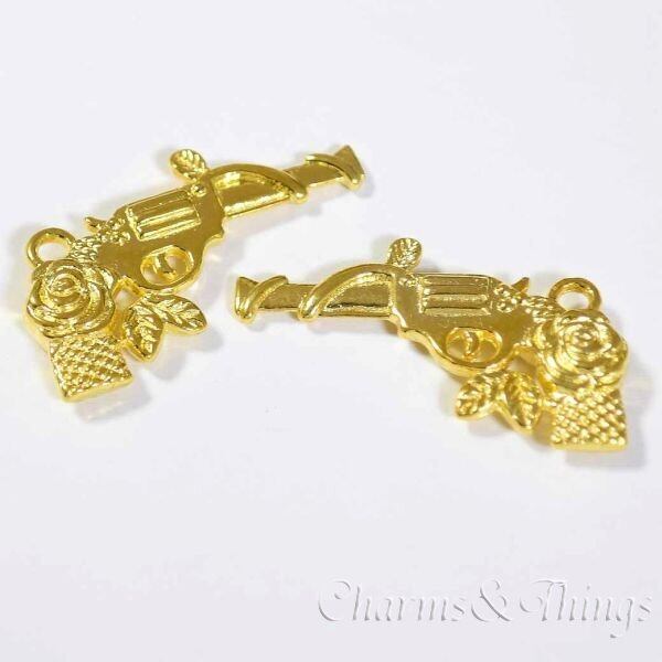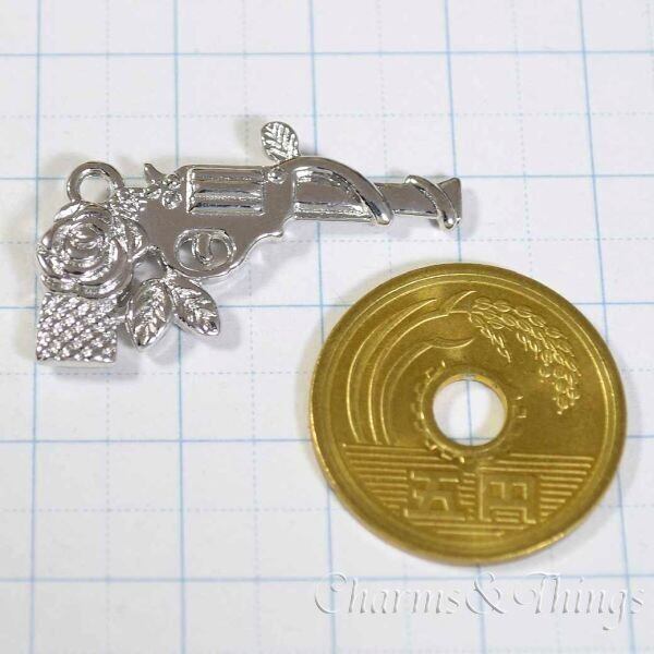 C&T バラ ピストル 拳銃 チャーム 薔薇 (4個入) アクセサリーパーツ【SC11019DS】銃ミリタリー 両面加工 手芸用品